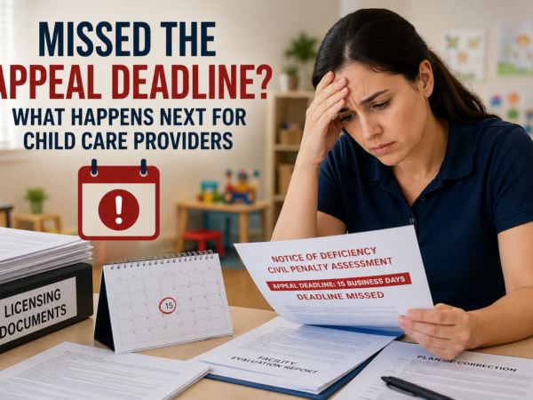 Missing a child care licensing appeal deadline can feel devastating. A provider may worry that the citation is now permanent, the civil penalty cannot be challenged, or the facility is already on the path toward suspension or revocation.